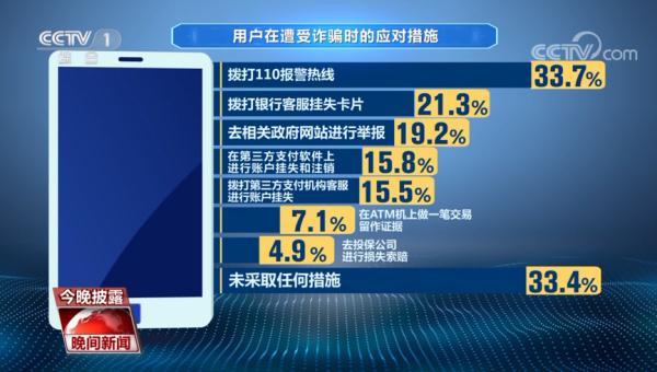 调查显示,在意识到自己遭遇诈骗后,“拨打110报警热线”是被选择最多的应急措施,占比33.7%。但仍然有33.4%的被访者出于各种原因,在遭遇诈骗后没有采取任何措施,这一现象更多见于45岁以上的大龄群体。