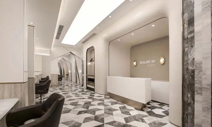 依格宝星级平安店位于深圳第一高楼平安大厦的平安商业中心4楼,它的位置是绝佳的商业环境和走廊。主要挑战是店铺选择修长的平面布局,完美迎合它拥有独立的部分。发廊紧邻三楼的扶梯空间,接待区是一个开放式的,以墙和柜台的柔和的线条迎着背景墙;三角几何元素点,让这个明亮的空间拥有别具一格的设计感。