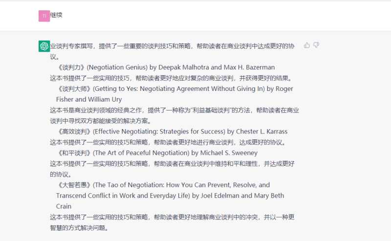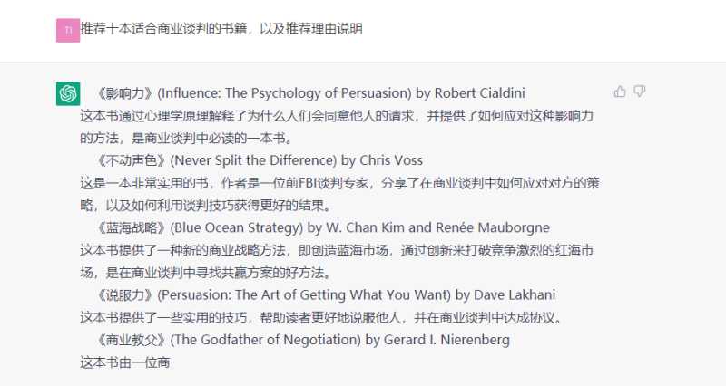 ChatGPT为你推荐了10本适合商业谈判的书籍