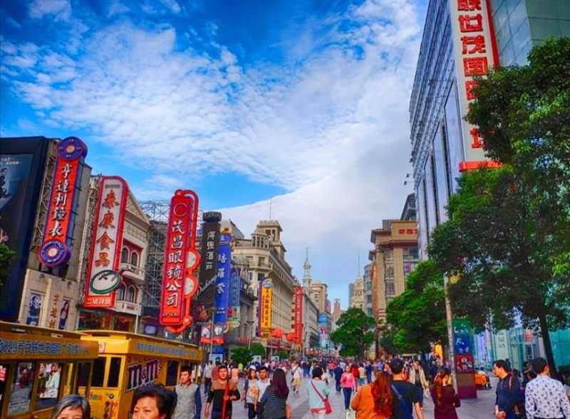 南京东路东起外滩中山东一路,西至西藏中路,全长1599米。其中河南中路以西部分为步行街。一直以来被誉为中华商业第一街,素有“十里南京路,一个步行街”的称号,路旁遍布着各种上海老字号商店及商城。每到节假日这里总是人头攒动,一片热闹繁华之景。
