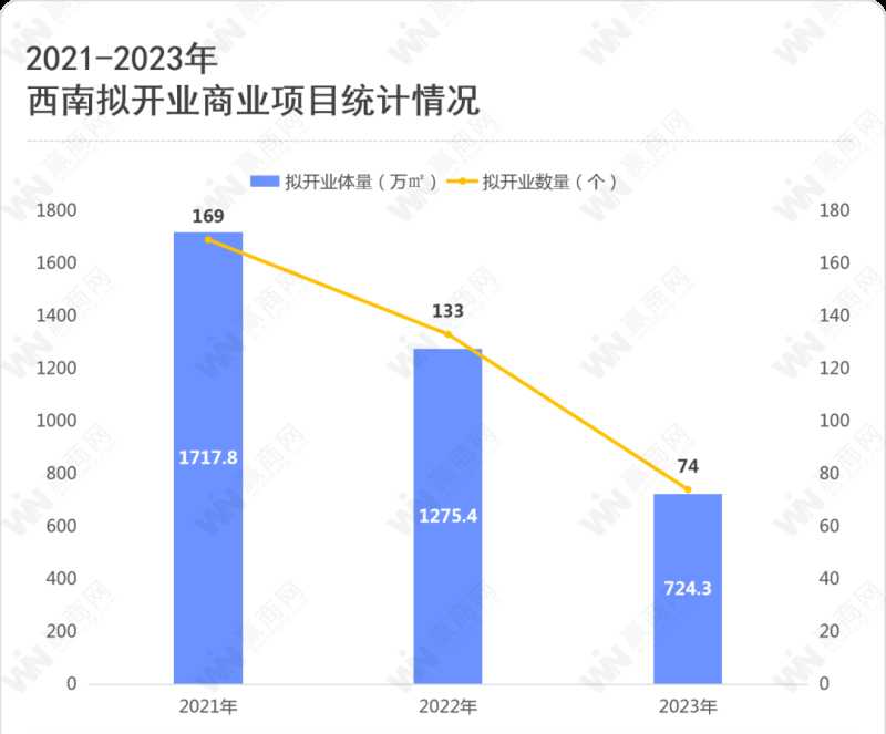 而2021年,重庆开业的商业体量超总体量超522万方,2022年291.2万方,而今年拟开业的数据是115.2万方。