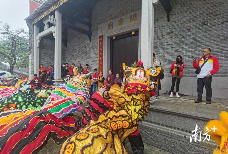 而河对岸的水上关帝庙,今天也重新开放。十支醒狮队伍、一艘传统龙舟分别从水路、陆路前来参与水上关帝庙开门仪式,现场送祈福牌、派烧猪,好不热闹。尤其是水上关帝庙重新开放后,计划一年将进行24场文化活动,为市民游客带来龙狮、龙舟等丰富的表演活动。这些具有重要代表性的历史景观也将串珠成链,成为禅城区讲好岭南文脉轴线故事的生动实践。