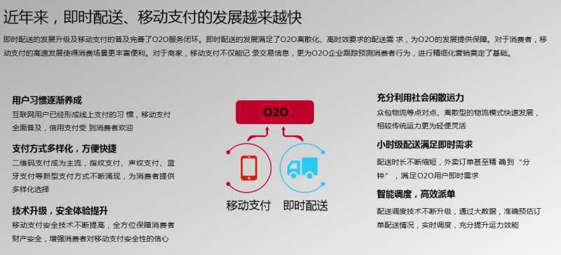 其实商业模式啊,它就是赚钱的一个套路是什么?那O2O呢,就是商业模式里边最接地气的一个,它是指线上到线下形成了一个闭环,其实它本质上是指互联网在传统行业的这种广泛应用啊,你像滴滴打车,美团外卖都是典型的O2O模式,闭环一般是体现在线上的,从获客到服务,交易完成后的评价都是在线上,服务则是体现在线下。