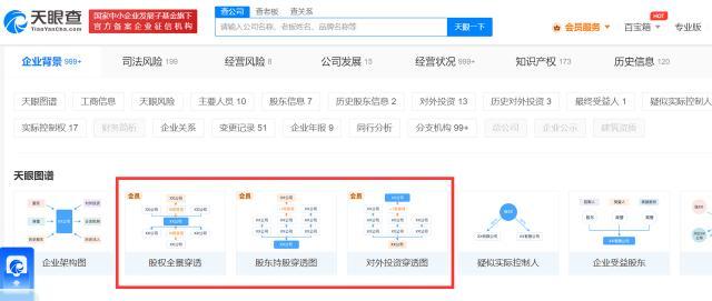 时代变迁,商查服务顺势而为。为了满足商业社会人对股权结构深度解析的普遍诉求,作为国内领先的商业查询平台,天眼查于今年3月重磅升级“天眼图谱”,率先推出“股权全景穿透”“股东持股穿透”“对外投资穿透”“股权关联关系挖掘”等4大新功能,助力深挖股权结构,一手掌握资本版图。