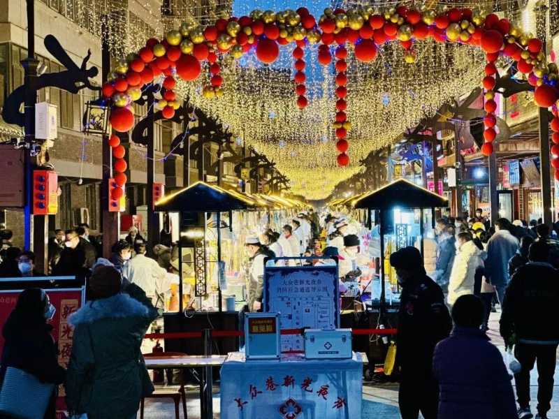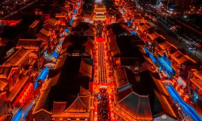 现场我们可以看到,黄河食渡文化夜市内呈“丫”字形分布,内设长安街、秦州街、兰州街、凉州街、西域文化街五个主题街区,每个街区相对应不同的特色。兰州主题街为食客呈现的是兰州水车、兰州太平鼓、牛肉面等兰州非物质文化遗产;凉州主题街区和西域文化街以河西文化为主,呈现的是丝绸之路文化内容;秦州主题街区将陇东窑洞、红色文化、陇东粮仓作为展示内容;长安街则引入了国家级非物质文化遗产泾阳茯茶,以及大唐仿古建筑。