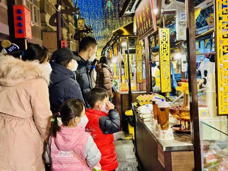 梅花糕、烤冷面、铁板虾滑、牛奶醪糟、臭豆腐、软儿梨、烤肉烤鱿鱼、鸡蛋汉堡、孜然肉夹饼 、烤冷面等等等……各种美食小吃琳琅满目。夜晚,大众巷新光夜市人头攒动,临街商铺也是一座难求。一块“我在兰州很想你”的标语牌随着大众巷星光夜市刷爆了朋友圈。