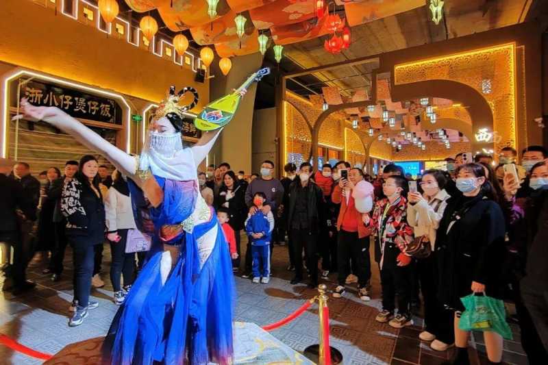 与以往叫卖吆喝、煎煮烹炸形象不同,3月18日开业的黄河食渡文化夜市从历史的长河中款款出场,在夜经济中嵌入文化芯,一亮相就成为兰州新的网红夜市。除了张骞巡游,这里还有玄奘西行、飞天琵琶舞等,都是黄河食渡文化夜市四个微舞台为游客提供的沉浸式体验项目。