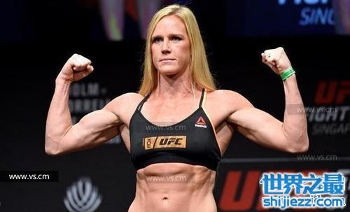 这是一位肌肉非常发达的UFC格斗女战士,她特别的喜欢打拳,并且在打拳的多次比赛中都获得了冠军。她是一位职业拳手从小就酷爱打拳,然后还练习跆拳道。这让她的肌肉非常的发达。同时她有非常强的思维战略能力。
