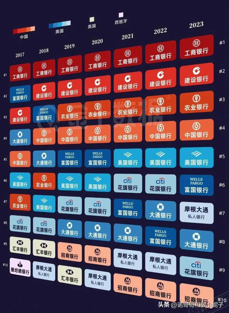 中国银行从2018年开始,超越美国的大通银行,一直稳居全球第四。