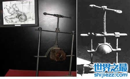 碎头机是欧洲中世纪时期的一种惩罚措施,这个时候欧洲确实黑暗啊,这种刑罚将人的下巴固定在木条上,上面会被扣上一个帽子,而后,刽子手会慢慢降低帽子的高度,犯人的脑袋会被慢慢压扁,眼睛也会抵不住压力而从眼眶喷射出去,犯人会在痛苦中死去。