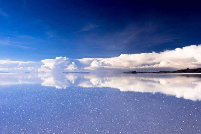 倘若你运气够好,你就能欣赏到震撼人心的“天空之镜”,一面平静的大“镜子”将天空中最纯净的蓝反射出来,仿若置身于天空之中。在白天,盐湖中随处可见像钻石一般闪闪发光的盐粒,而在夜晚,却也是观察漫天繁星的最佳场所,浪漫非凡。