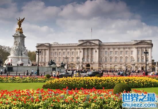 白金汉宫,英国的王宫。建造在威斯敏斯特城内,位于伦敦詹姆士公园的西边,原为白金汉公爵于十八世纪时建造并因此得名。后以21000英镑卖给英王乔治二世。宫殿建筑富丽堂皇,外部装饰华美。维多利亚女王接替王位后,这里正式成为王宫。现英女王伊丽莎白二世与菲利普亲王居住此宫。
