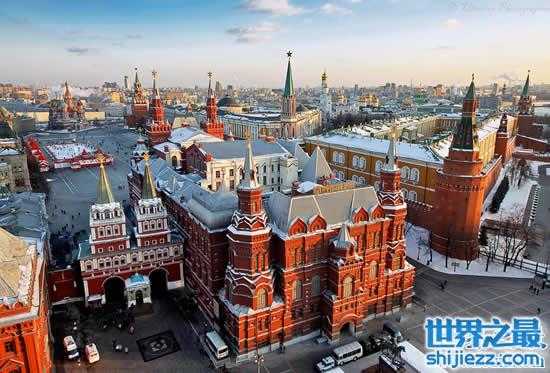 克里姆林宫·在莫斯科市中心。曾为莫斯科公国和十八世纪以前帝俄的皇宫,十月革命以后,为苏联党政领导机关所在地。莫斯科克里姆林宫是俄罗斯国家的象征,是世界上最大的建筑群之一,是历史瑰宝、文化和艺术古迹的宝库。