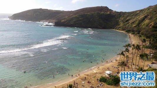 夏威夷最著名的绿沙滩,由四块组成,放眼望去满眼的绿色,不过这个绿沙滩还是有一点点危险,如果来观赏游玩一定要注意安全,一不小心可能会出危险。