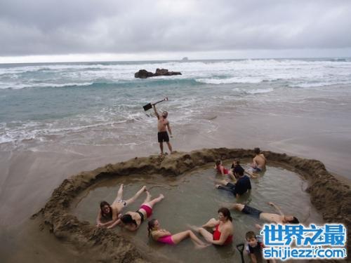 热水海滩的意思就是,这里的水都是温水哦,可以自己挖一个纯天然的温泉,每次涨潮退潮后温泉都会重新被掩埋,并且期待着下一批游客来探索,也许这就是新西兰热水海滩的魅力所在吧。