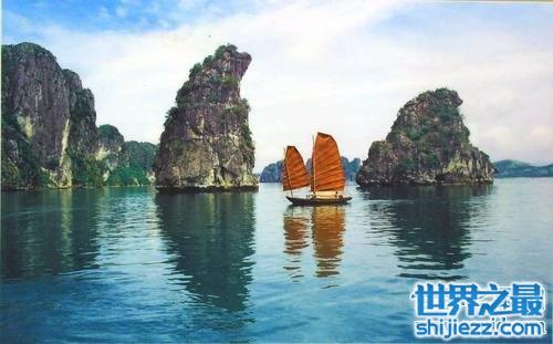 下龙湾位于越南南北部,海岸线长度120公里,有“龙王下海之处”的美称,下龙湾景区内分布着数千座丛林密布的岛屿,有些岛屿内部空心区形成了一个巨大石窟,成为世界自然奇观美景,令人叹为观止。