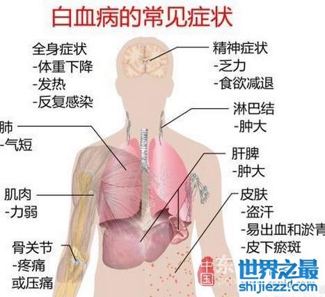 白血病是造血组织的恶性疾病,又称“血癌”。其特点是骨髓及其他造血组织中有大量白血病细胞无限制地增生,并进入外周血液,而正常血细胞的制造被明显抑制,该病居年轻人恶性疾病中的首位,病因至今仍不完全清楚,据报道,我国各地区白血病的发病率在各种肿瘤中占第六位,是世界五大绝症中在我国发病率最高的绝症。