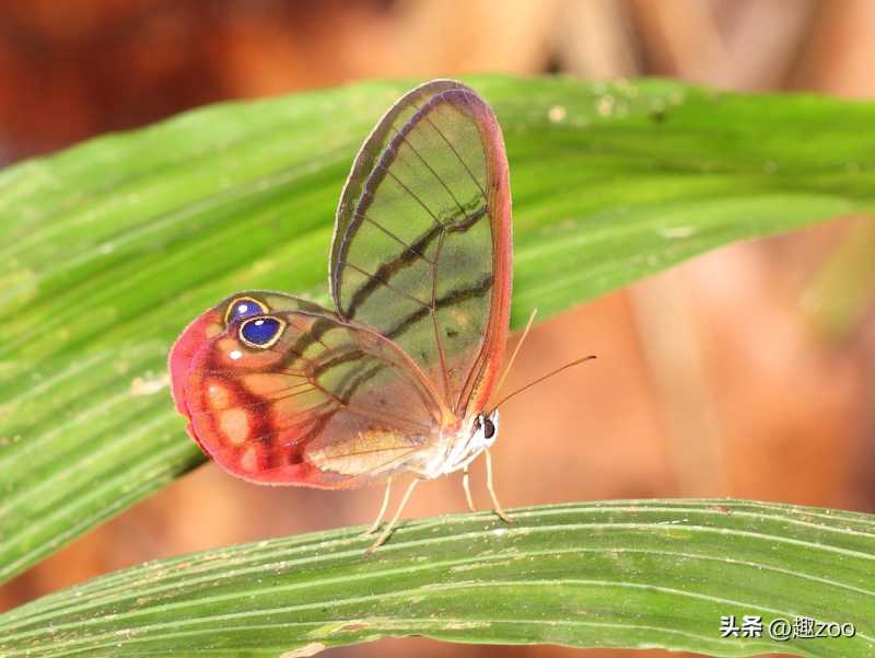 玫瑰水晶蝶,这种蝴蝶宛若大自然中的精灵,翅膀全部是透明的,下端是炫丽的红色,非常的好看又罕见,并且这种蝴蝶的透明部分是没有鳞粉的,不得不感慨大自然的神奇。如此美丽的尾部和全透明的翅膀因此也是很多收藏家都渴望得到,但是又发现不了。这种蝴蝶在中国也是比较难得的珍品,在中国广东、广西、江西等地区都有所分布。