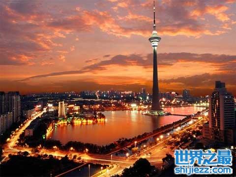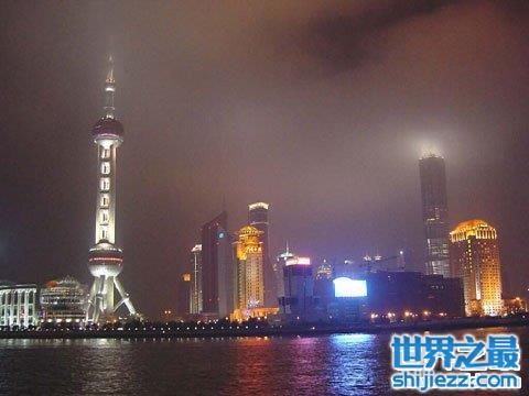 上海东方明珠塔,高于地面 468 米,是亚洲第一高塔,世界第三高塔,仅次于国家塔和奥斯坦金诺电视塔。上海东方明珠塔位于陆家嘴末端,黄浦江畔,与世界著名的上海外滩遥相呼应。鉴于上海的地理位置和历史地位,天才的设计者设计了 11 个大大小小不同高度的球形建筑,以及一些球形的设施,矗立于绿树青草之间,营造出“大珠小珠落玉盘”的意境。