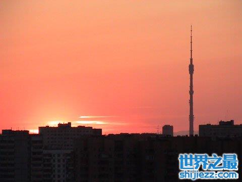 莫斯科奥斯坦金诺广播电视塔于 1967 年建成,是世界上第二高的独立建筑。其建筑重量超过 55,000 吨。奥斯坦金诺电视塔高达 1,771 英尺(540 米),对于一个不是以摩天大楼著称的城市来说算是一个建筑奇迹。游客到达塔的观景台只需 58 秒。观景台位于离地面 1,105 英尺(337 米)的高空,从这里可以用全新的视角欣赏莫斯科。观景台下面是“第七天空”餐厅的 3 个用餐室,在这个餐厅中可以享受到欧洲美味和俄罗斯传统菜肴。奥斯坦金诺广播电视塔不仅仅是一个观光景点,同时还通过无线电讯网络发射着 11 个电视台、12 个广播电台和 17 个卫星电视节目的信号。