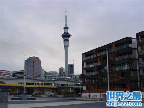 位于新西兰第一大城-奥克兰328公尺高耸入天的天空塔(Sky Tower)是南半球最高的建筑物,并且天空塔也是全世界第12高的建筑物,比巴黎的艾菲尔铁塔及悉尼的AMP塔还高。试着想像天空塔的高度,有如37辆巴士接连在一起的长度。天空塔的重量也是相当惊人的,2千1百万公斤,相当于6千头大象的重量。 天空塔的建材上以一万五千立方公尺的混凝土及两千吨的强力钢筋, 天空塔是费时两年九个月的时间建造完成。