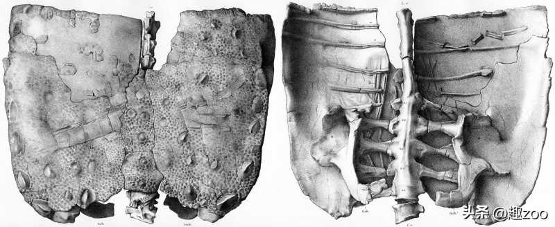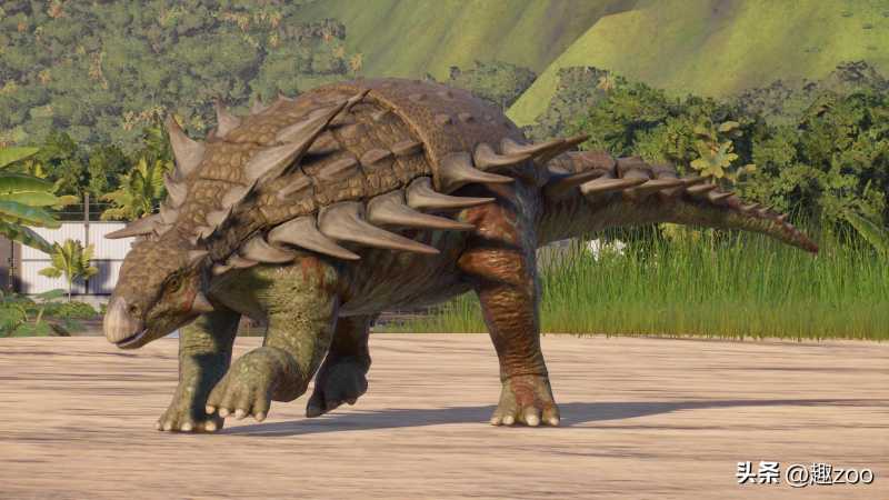 背甲龙是一种体长可达10米的恐龙,它的体宽较大,颈部相对较短。四肢粗短而强壮,脚部短而宽,前脚有5个指头,后脚有4个趾头,指(趾)末端有蹄状的爪子,适合在陆地上活动。当遇到敌害时,背甲龙可以将爪子插入土中,以避免身体被翻倒,保护其柔软的腹部;同时,它还可以利用发达的尾锤进行反击。背甲龙通常被认为是装甲恐龙的起源。它的特点是全身覆盖着甲壳,并且拥有巨大的椎尾。然而,背甲龙是甲龙属中最大的一种。与现代陆地动物相比,背甲龙的体型显得特别庞大。