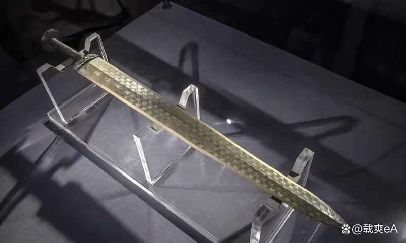 1965年出土于湖北省望山楚墓群中。越工勾践剑,春秋晚期越国青铜器,国家一级文物。“越王勾践剑,通长55身宽4.6柄长8.4厘米。格处有‘越下鸠浅(勾践)自作用剑’八个鸟篆铭文。