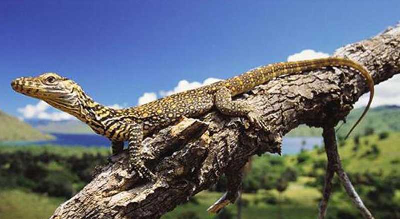 习性和行为:萨氏巨蜥的咬合力和力量是巨蜥中最小的,性格胆小,平时喜欢待在树上或岩石缝隙里。