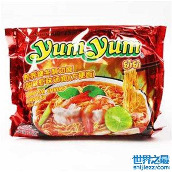 全球十大好吃泡面:超辣鸡肉味干拌面、农心安城汤面、进口黑椒蟹肉方便面、YUMYUM养养冬荫功方便面、Sedaap喜达原味捞面干、新加坡进口 KOKA可口原味鸡汤面、沙爹鸡汤拌面、小浣熊辣味乌龙面、韩国八道炸酱面、韩国热辣面进口方便面