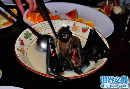 看到这道“蝙蝠汤”,我们先不说它的味道如何,就单纯看到一个还“活生生”的蝙蝠在你嘴巴,你下的了嘴吗?不说清个内脏,你至少把毛给拔了吧!你说那不干正事的《福布斯》评选的“全球十大恶心食品”有一个比的上这个不。