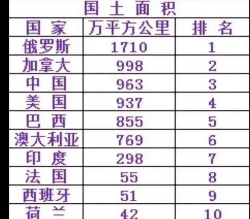 这些国家拥有广袤的土地,为其国家的发展和资源储备提供了巨大的空间。