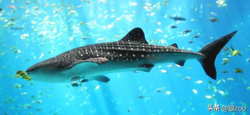 鲸鲨又名鲸鲛、豆腐鲨、大戆鲨、戆仔鲨,是目前世界现存上体型最大的鱼类,目前记录最大尺寸为12.65米长,21.5公吨重,鲸鲨生活在热带和温带海域中,寿命可达70年至100年。鲸鲨具有非常宽大的嘴巴,是一种滤食动物,虽然鲸鲨通常出现在近海地区,不过人类也曾经在沿岸、潟湖、珊瑚礁、河口与运河发现它们的踪影。虽然鲸鲨拥有巨大的身躯,但不会对人类造成重大的危害。科学家经常用它们来教育社会大众,不是所有的鲨鱼都会“吃人”。在海洋里鲸鲨几乎没有天敌,但人类进行的渔业活动是它们数量减少的主要原因。我国广东珠海长隆海洋王国当中的鲸鲨馆内有饲养了5条鲸鲨。