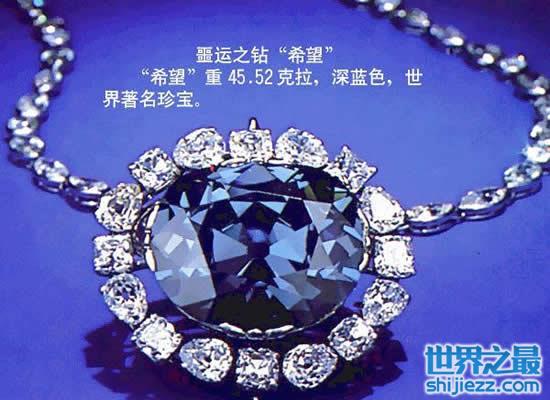 看过《泰坦尼克号》的朋友,一定不会忘记电影里露丝带的那颗“海洋之星”,那颗硕大的钻石就是“希望蓝钻”的原型,世界四大钻石之首。“希望蓝钻”重量为45.52ct,为椭圆型,具有极为罕见的深蓝色。虽然不是世界上最大的钻石,但绝对是世界上最倒霉的暂时。其隐约地透出一股凶恶的光芒,这可能是因为在它像迷雾一样的历史中,充满了奇特和悲惨的经历,它总是给它的主人带来难以抗拒的噩运。