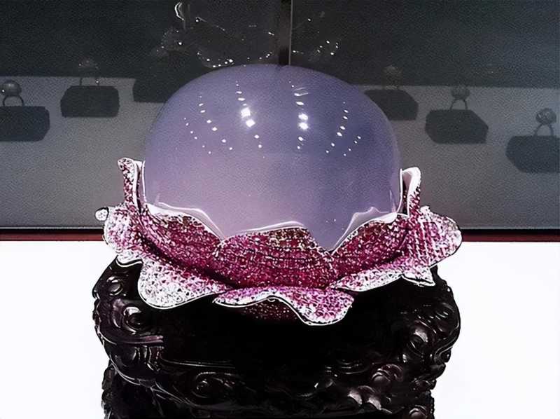 昭仪之星,紫色玻璃种翡翠主石,被众多的色彩绚丽宝石环绕,幻化成一朵娇艳欲滴的牡丹,堪称国宝级艺术品,价值6亿人民币。