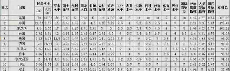 评比世界综合实力十大强国19个指标:中国远超俄罗斯,美国第一