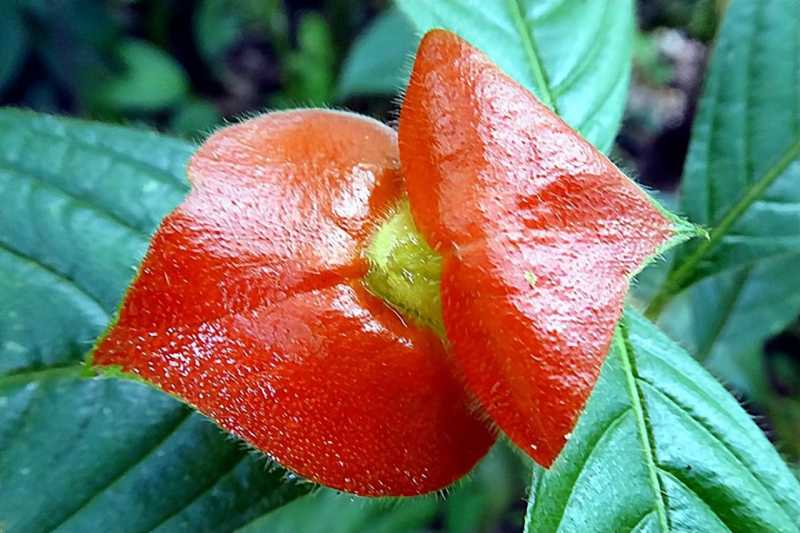 热唇草为双子叶被子植物,生长于巴西到墨西哥湾、西印度群岛一带。得名于其苞叶酷似少女的双唇,而它的花朵正好长在“双唇”之间。一场丛林疾雨过后,鲜润的“嘴唇”中间含着一朵小巧的花朵,一般为黄色,使它更显妖娆。实际上,这对“红唇”是热唇草的苞叶。苞叶是生于花下的变态叶,一般较小、绿色。但也有大型而呈各种颜色的,因种类不同而存在差异。苞叶对花和果实有保护作用,有些还可吸引昆虫。热唇草的苞叶就非常典型。它鲜艳的色泽吸引蜂鸟授粉,而它的花则既无颜色,也无蜜糖,招蜂引蝶就全靠这对性感的“热唇”。