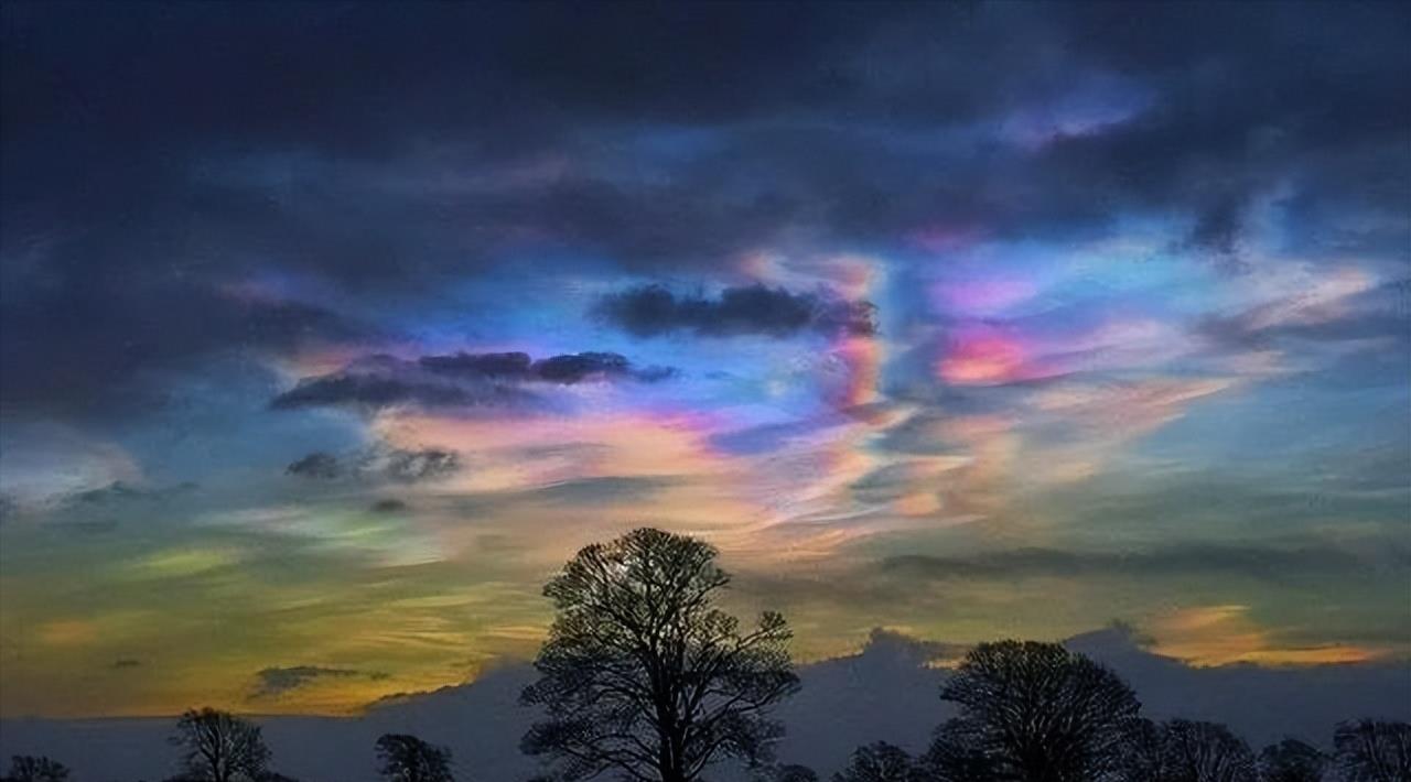 这可能看起来有点像极光,但事实上,它们是一种完全不同的大气现象,叫做珠母云。有时也被叫做珍珠母云,它们形成于相对较高的海拔,在海平面15英里(约合24公里)之上。这意味着日暮后这些高处的云仍能被太阳照到。在极地地区,这种云并不罕见,但是,在中纬度地区很少能看到。图中的云就出现在中纬度,是2006年在美国科罗拉多州拍摄。