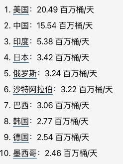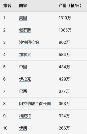 由于油价及产量会因市场供需关系而发生变化,因此排名可能会存在一定的波动。