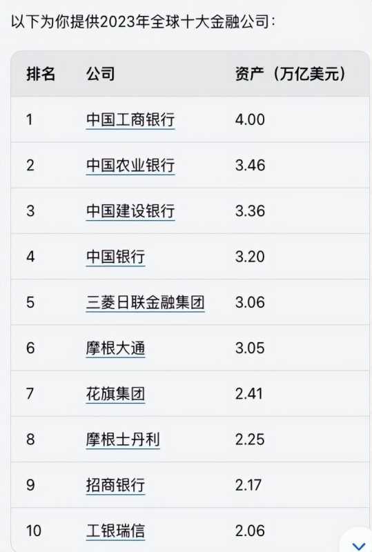 金融公司的排名会因统计机构和统计时间的不同而存在差异
