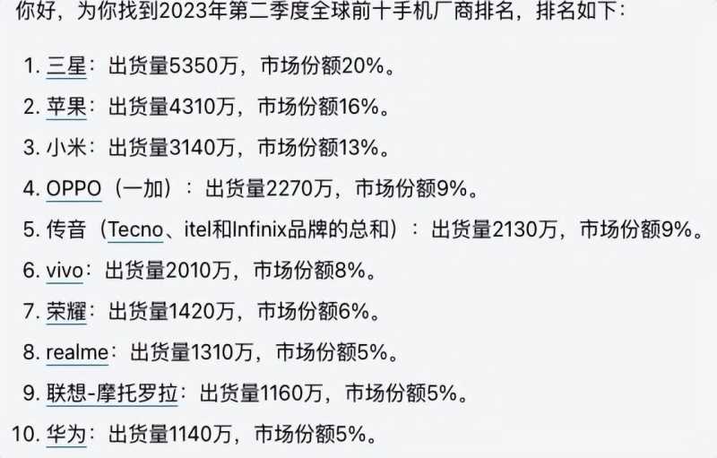 手机公司的排名会因统计机构和统计时间的不同而存在差异