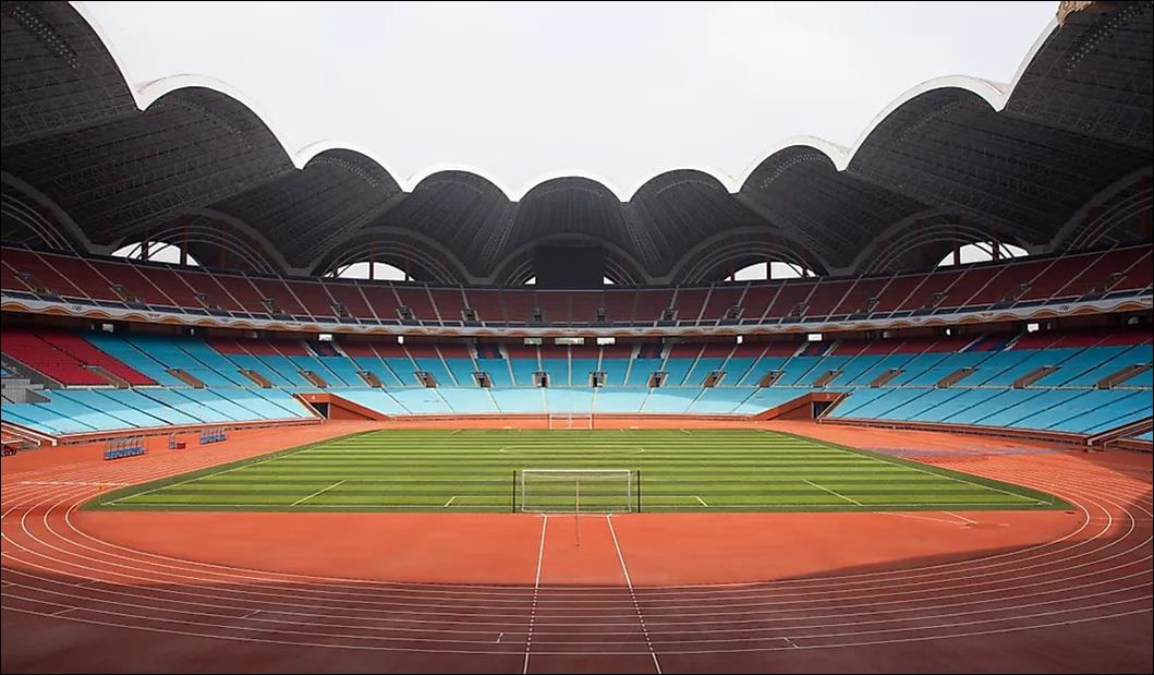 五一体育场位于朝鲜首都平壤大同江绫罗岛。这个巨大的体育场可以容纳114,000名观众。除了大量的座位外,五一体育场还包括1300多个房间和80个入口,占地约2,152,782平方英尺。这座体育场是按照降落伞或花朵的形状设计的,由16个拱门组成的屋顶距离地面197英尺。