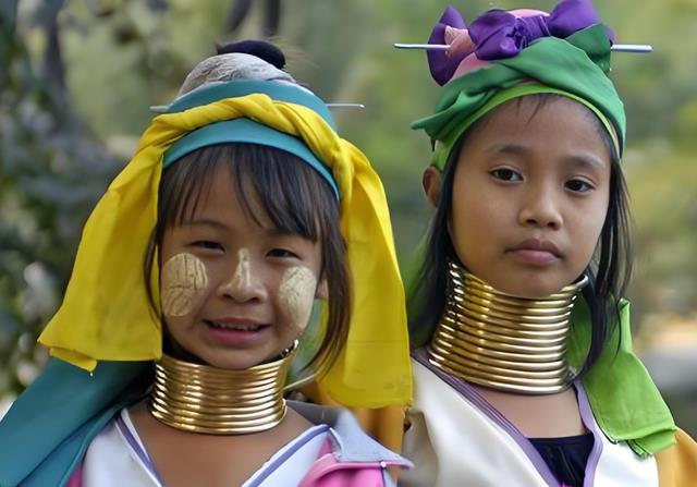 女孩5岁起戴铜环拉伸颈部,25岁时铜环总重达10公斤,象征美丽与财富。