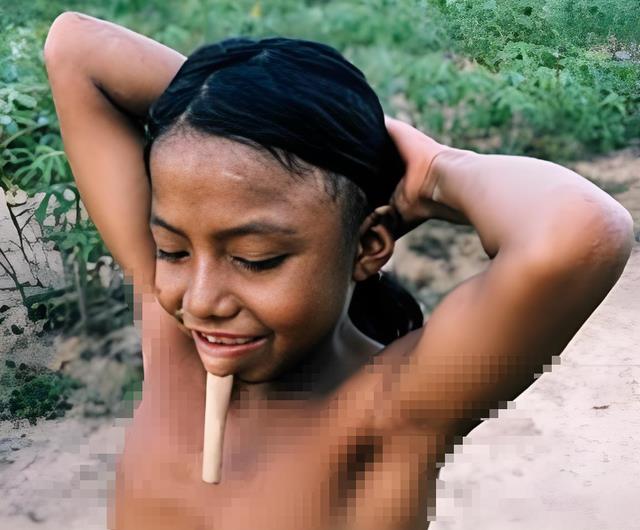 儿童7岁起用木棍穿刺下巴,木棍越长地位越高,一生更换三次。