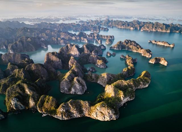 “海上桂林”的美誉实至名归。碧绿的海水中,近2000座石灰岩岛屿和石柱拔地而起,形态各异,或如直插云霄的利剑,或如静卧的巨兽。这些石峰历经千万年的海水侵蚀和溶蚀,形成了众多幽深的岩洞和隐秘的泻湖。乘船穿行其间,云雾缭绕,峰回路转,仿佛置身于水墨仙境,神秘而宁静。