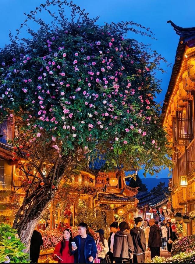 丽江古城夜景封神!800年纳西古城依山傍水,青石板路蜿蜒曲折,四方街的篝火晚会热闹非凡,红灯笼挂满街巷,像星河坠人间!纳西古乐萦绕耳畔,鲜花饼的香气混着茶香,非遗文化混着烟火气,太有那味儿了!