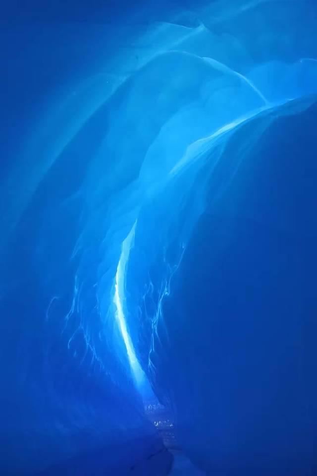 10. 南极蓝色冰隧道:冰封的蓝宝石幻境,致密冰层过滤光线后泛着幽蓝光泽,冰壁透明层叠,隧道蜿蜒曲折,纯净又梦幻,宛如闯入冰雪童话。