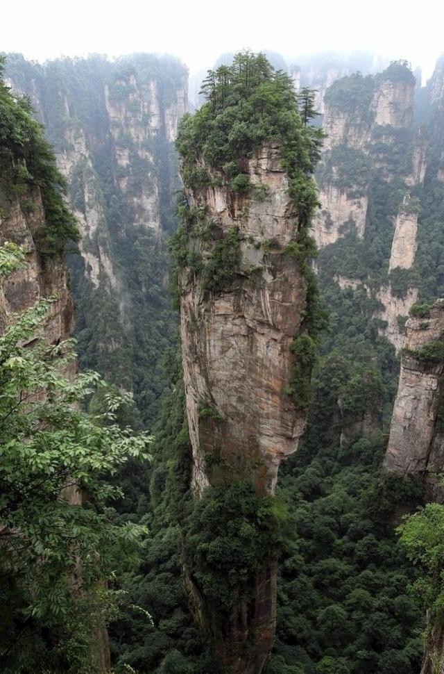 8. 中国张家界峰林:仙境般的石英砂岩峰林,数千根石柱拔地而起,云雾缭绕时宛如悬浮空中,奇秀险峻,自带缥缈意境,宛如仙侠秘境。