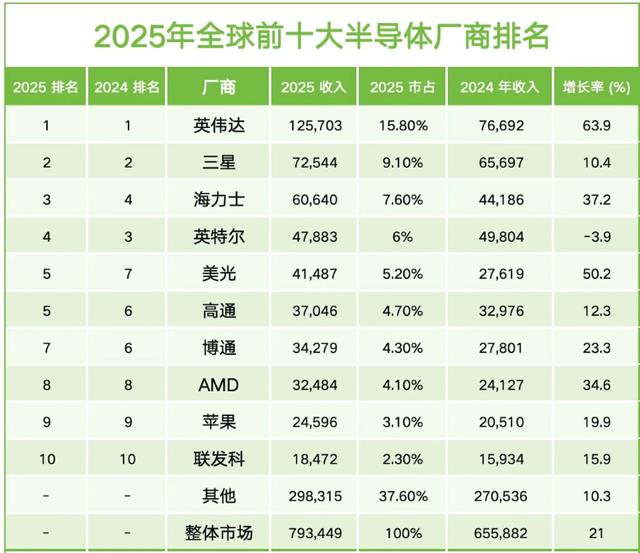 形势严峻!2025年全球10大半导体企业,中国大陆无一上榜