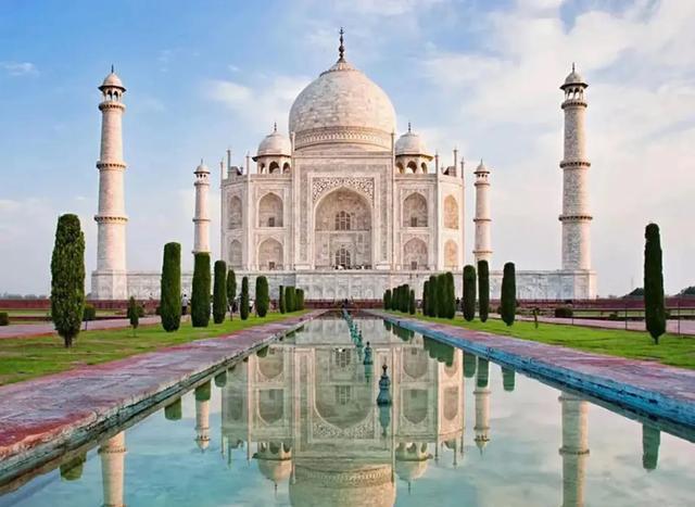 泰姬陵是莫卧儿皇帝沙贾汗为缅怀挚爱妃子,于1631年至1653年间在阿格拉督造的白色大理石陵墓式清真寺,它跻身世界文化遗产名录,还成功入选“世界新七大奇迹”,蕴藏着登峰造极的艺术价值。