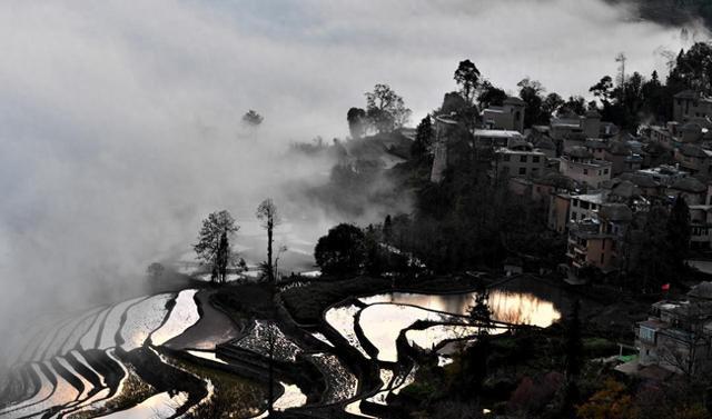 山上是林,中间是村,下面是田,水从林里慢慢走到田里,这套水路叫“森林—村寨—梯田”四连环,成了世界遗产。